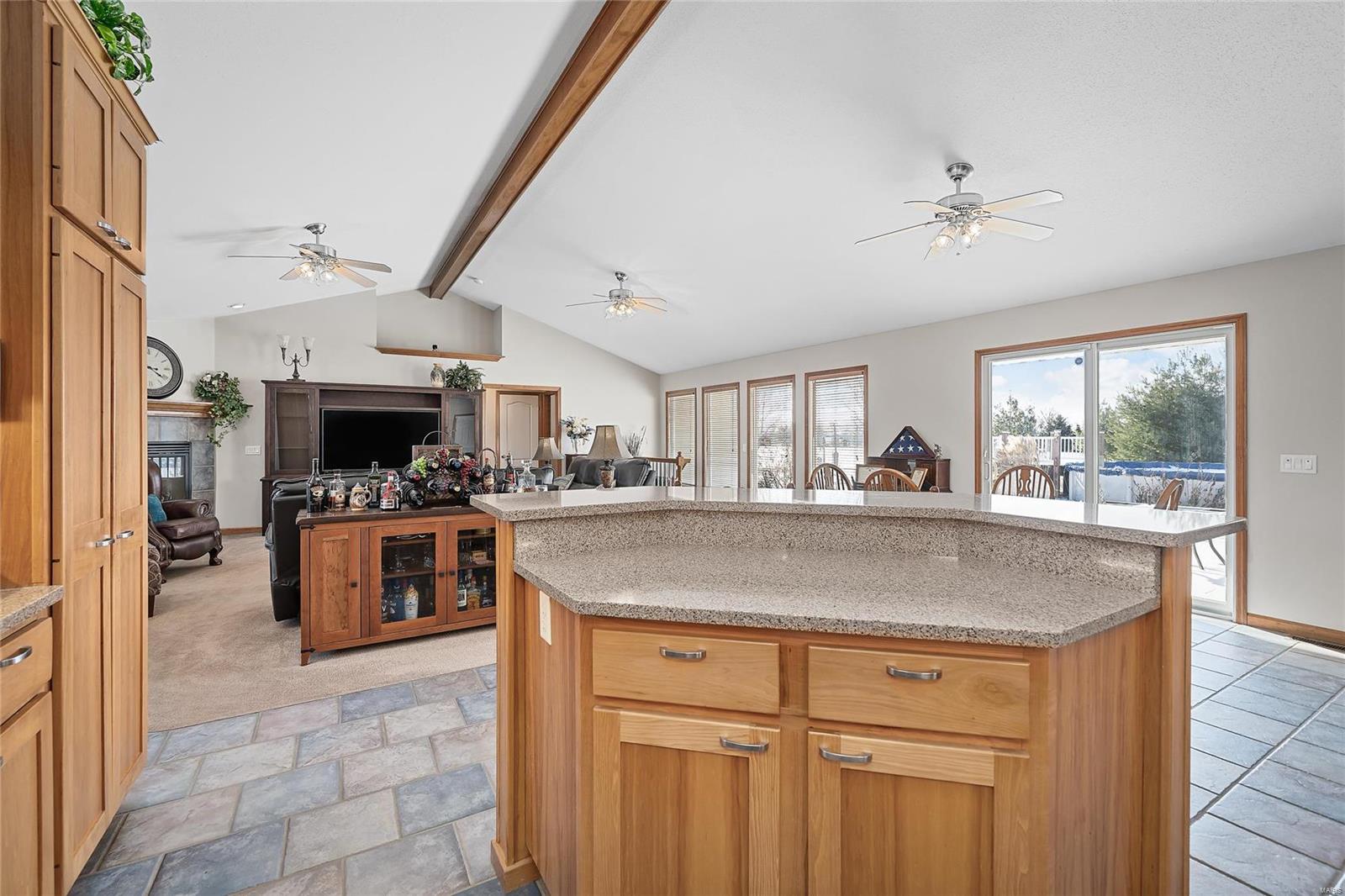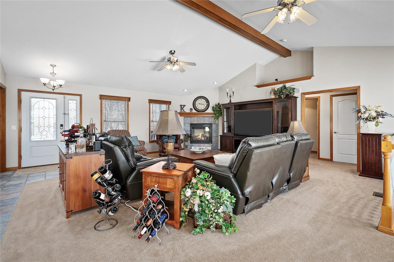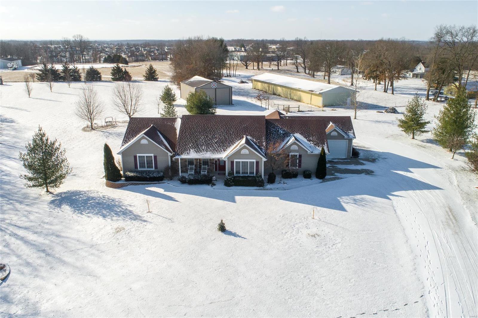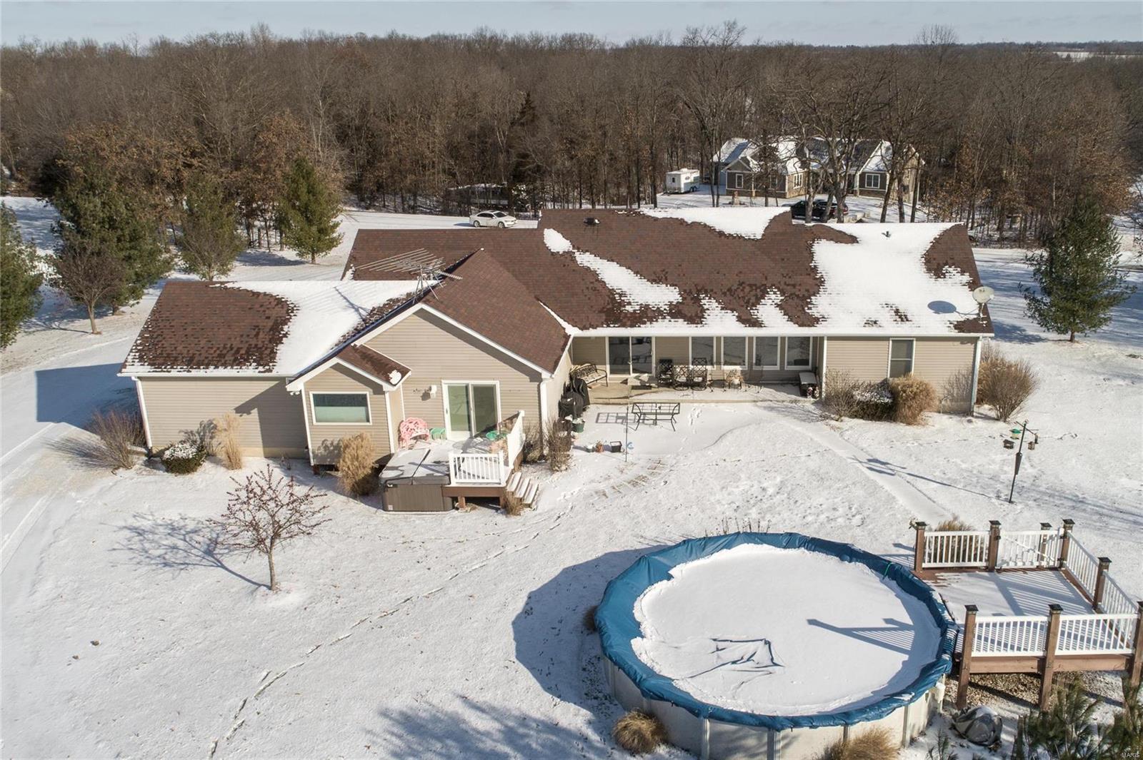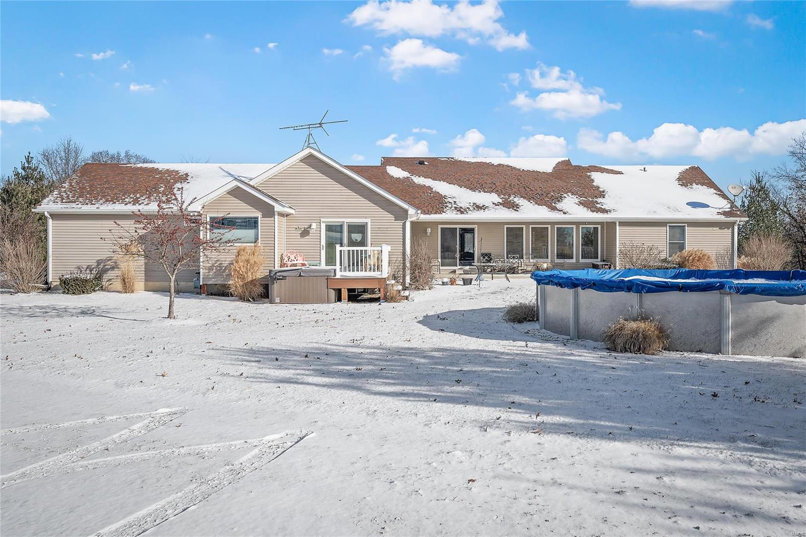 Quality materials & something for everyone! 4 Bedroom/Office, 3.5 bath Ranch home w/over 2175 sq.ft main floor, on private 3 ACRES w/Blacktop streets. 50x30 (concrete floor, 14’ tall door for camper, 2-20 volt circuits), above ground pool, Cal Spa Hot tub, Finish in LL w/walk up (could be 5th Bedroom/In Law Qrts) Full Bath, workshop area/Utility Sink, plenty of space left for storage & built in shelves. The Master Suite remodel features: Vaulted Ceiling, Hickory wood floors, Anderson Doors out to 12x12 trex deck w/Hot tub, Master suite: Vaulted ceiling over Jetted Tub, Walk in Stone Shower w/programmable heads, Heated Ceramic floors, Dual Sink w/Tower/Vanity, bidet, & walk in closet. Kitchen w/custom Hickory Cabinets, Quartz Counters, Breakfast bar/island, Newer appliances & Tile Backsplash. The Main Floor Laundry, 3rd Car finished garage w/workshop space, vaulted great room, gas fireplace, Anderson windows, guest 1/2 Bath, Full Bath for Beds 2&3 (walk in closets) complete the package!
