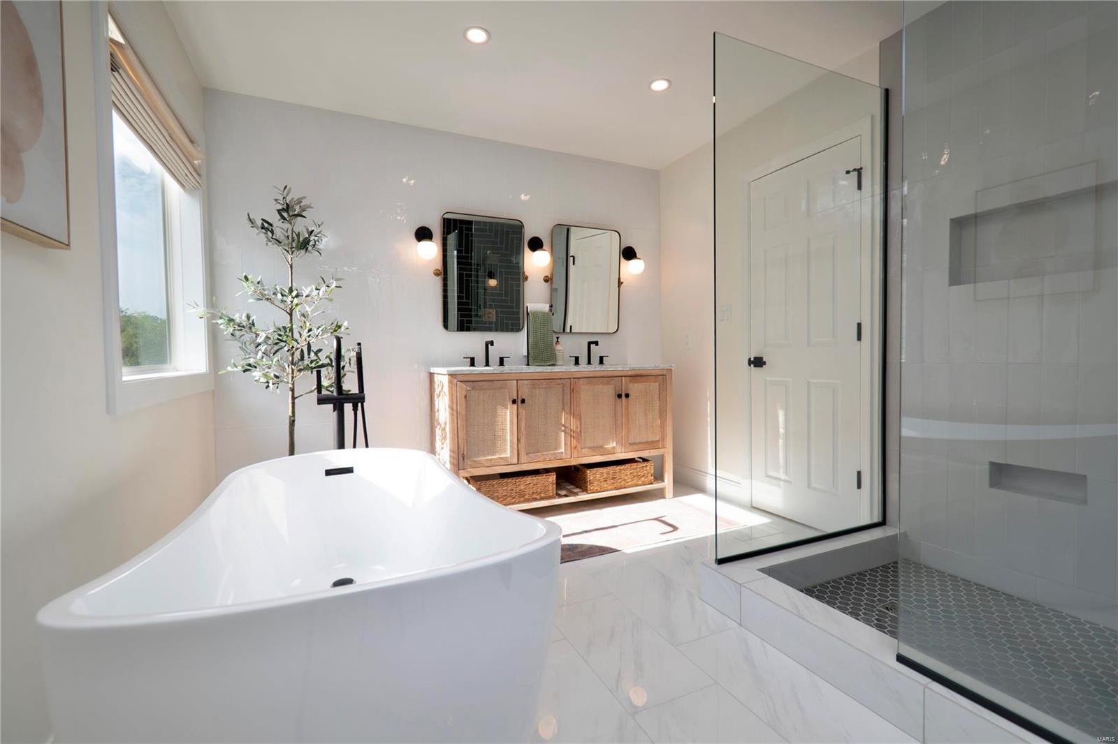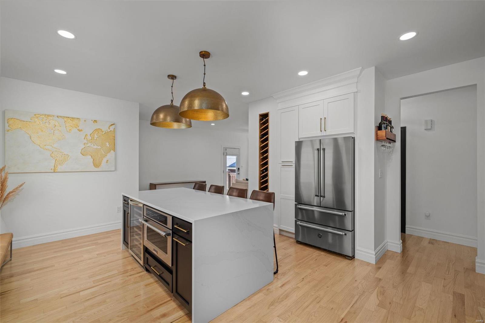 Welcome to 8951 Litzsinger, with ~3200 total sqft of designer living space, this home is a must see! Step into the chef’s kitchen, featuring 48” gas Bertazzoni range, double waterfall Calacatta Gold quartz countertops and ample wine storage. The finished basement boasts a bedroom and full bathroom, 9’/8’ ceilings, custom finishes with an entertainment center built-in, a wet bar with sink and disposal, dishwasher, additional refrigerated beverage storage topped off with natural soapstone countertops. Retreat to spacious bedrooms, including a luxurious primary suite with vaulted ceilings, two large walk-in closets, and tranquil bathroom with natural finishes and soaking tub. Enjoy the outdoors with a patio space and the convenience of a private drive. The home’s roof and HVAC are 4 years old. Water heater is 1 year old. Located in the award-winning city of Brentwood, nearby shops, restaurants, schools and the new Brentwood Park. This property is agent owned.